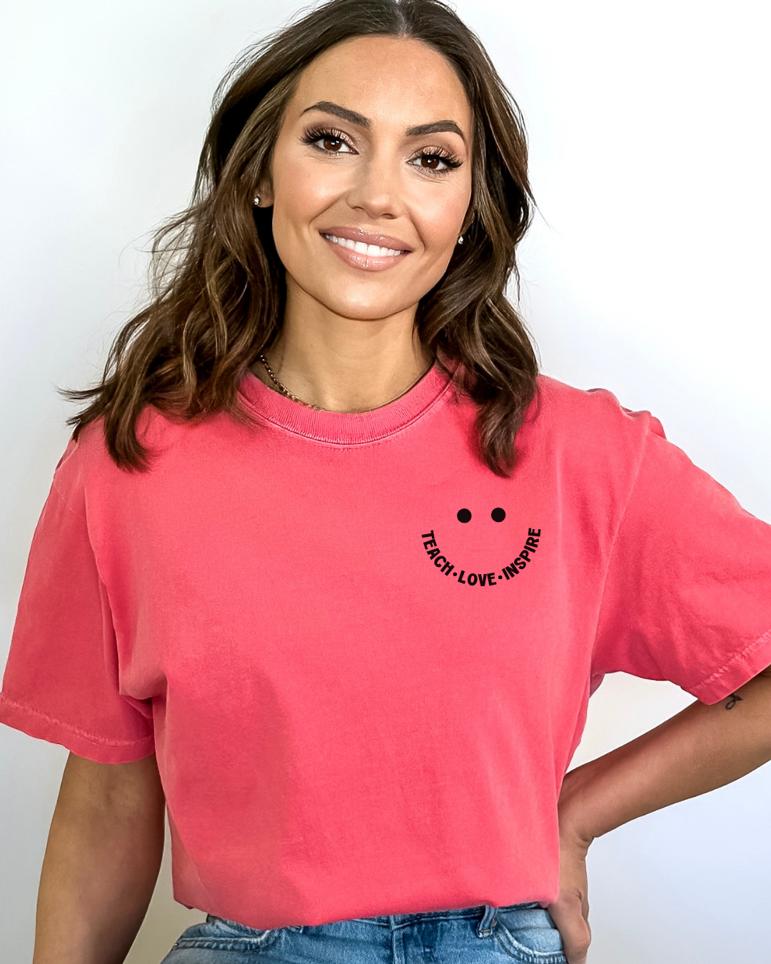 This Fonts by Leah custom tee features a round neckline with thick detailing, a long body, and super soft 100% cotton material.