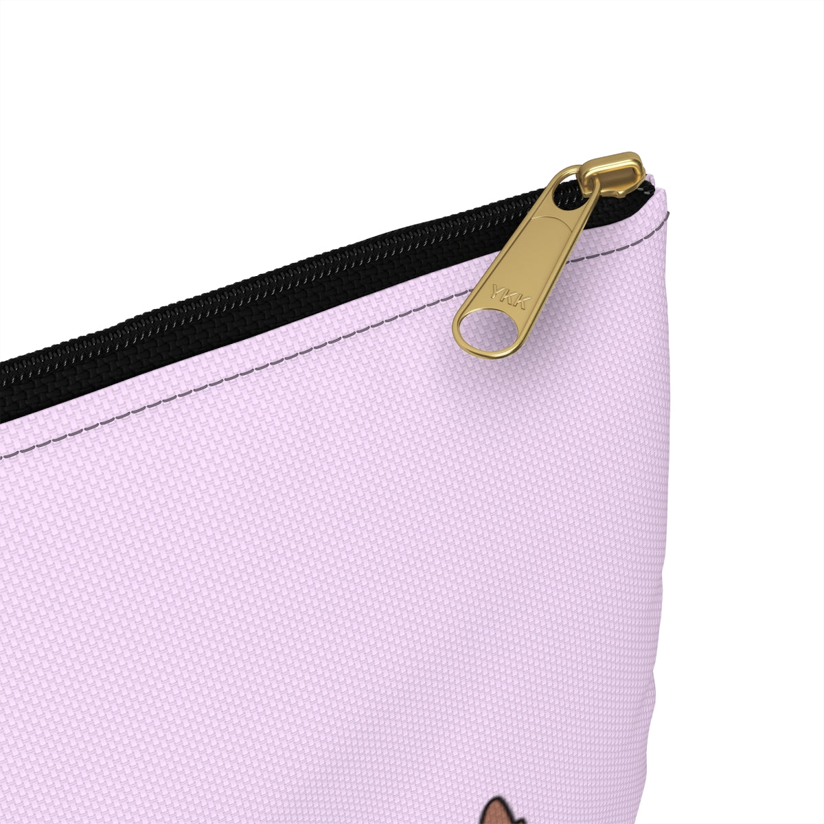 - Black zipper with gold puller